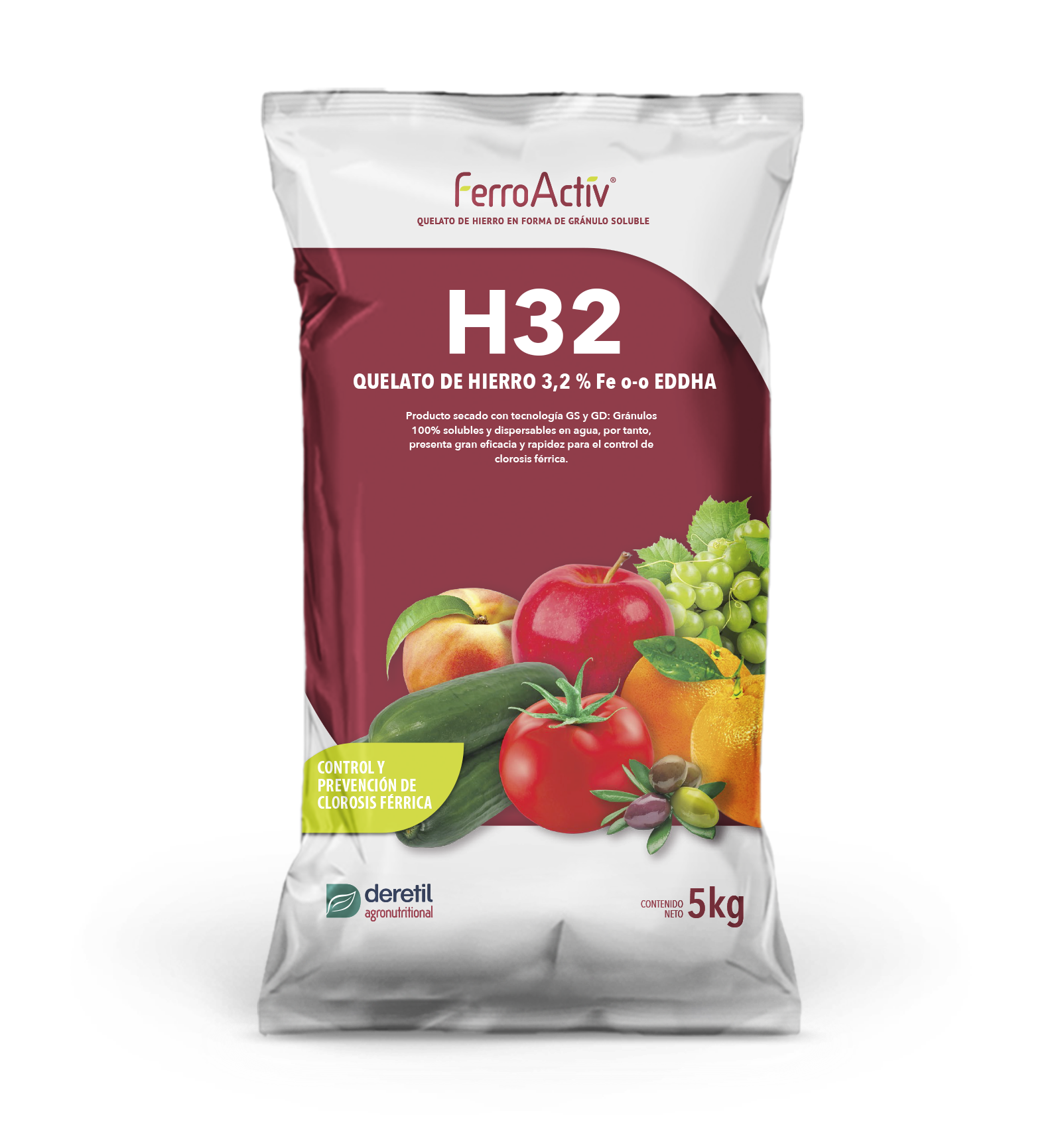FerroActiv H42 est un produit formulé grâce à la technologie GS et GD (granules 100 % solubles et dispersibles dans l’eau), facile à assimiler. Permettant d’atteindre une grande efficacité et rapidité dans le contrôle de la chlorose ferrique. Cette technologie nous permet de travailler avec un granule facile à manipuler et qui ne dégage pas do poussière.
